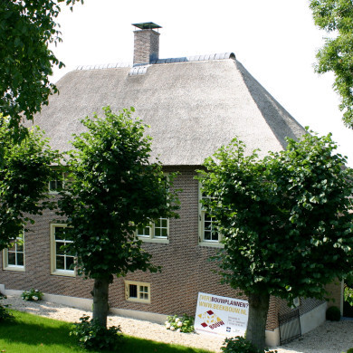 BOERDERIJ, 17e eeuw, met dwars woongedeelte onder rieten schilddak. Rechts een opkamer met in de vensters houten kruiskozijnen. Links vensters met zesruitsramen en luiken en in de zolderverdieping oorspronkelijke tweelichtskozijnen.