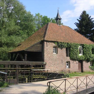 St. Ursula-watermolen. Bakstenen gebouwtje met door een dakruiter bekroond schilddak, ankerjaartal 1773 en boven de ingang een nis met beeld van de H. Ursula.