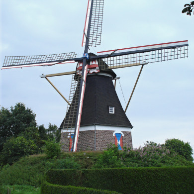 Molen "Maria". Zeskante korenmolen uit 1812, tot bergmolen verhoogd in 1858.