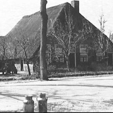 Boerderij van het Veluwse type, waarschijnlijk begin 19e eeuw, met rieten wolfdak en vensters met luiken en twintigruitsschuiframen.