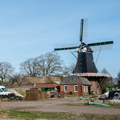 De Korenschoof, achtkante bovenkruier met stelling in 1849 gebouwd blijkens jaartal op sluitstenen. Korenmolen sinds 1888.