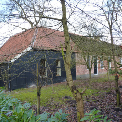 Schilderachtig aan de oever van het meer staand langgerekt gebouw onder rietgedekte kap, aan de oostzijde tegen topgevel. Deuren in eenvoudige kozijnen, in de vensters zes ruiten; langs de topgevel vlechtingen. Vormt een geheel met het buurnummer 219.