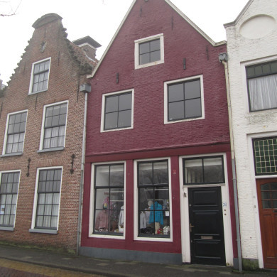 Pand onder zadeldak tegen later slecht gedetailleerde puntgevel.