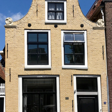 Pand onder zadeldak tegen topgevel. Zesruitsvensters op de verdieping.