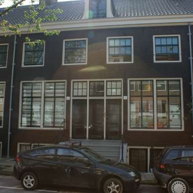 Aaneengesloten reeks onderkelderde dijkwoningen met bel-etage en bovenverdieping onder dwarsgeplaatst zadeldak met dakkapellen met hijsbalk, tussen puntgevels, gebouwd naar ontwerp van G. Moele, J. Moele en G. Moele jr. in 1828 (de zgn. Sibbelwoningen).