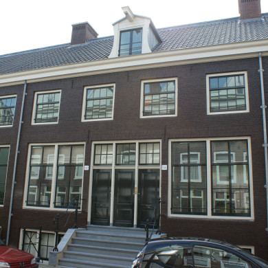 Aaneengesloten reeks onderkelderde dijkwoningen met bel-etage en bovenverdieping onder dwarsgeplaatst zadeldak met dakkapellen met hijsbalk, tussen puntgevels, gebouwd naar ontwerp van G. Moele, J. Moele en G. Moele jr. in 1828 (de zgn. Sibbelwoningen).