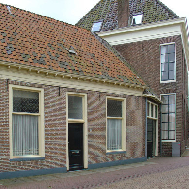 Statig pand met rechte kroonlijst, vijf ramen breed. plm 1840.
