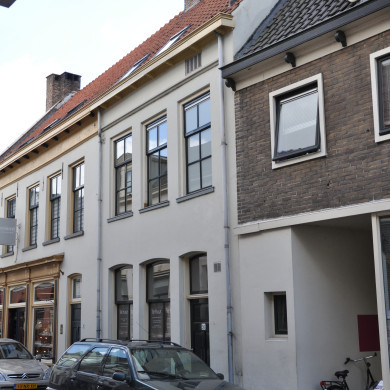PAND, oorspronkelijk XVII met gepleisterde gevel onder rechte lijst. Breedte vijf vensterassen. De voorgevel heeft natuurstenen banden en geblokte strekken boven de vensters. De verdiepingsvensters bezitten negenruitsschuiframen.