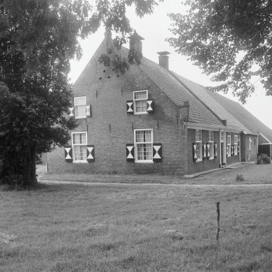 Boerderij met zijbaander en in 1843 voorgebouwd dwars woongedeelte.