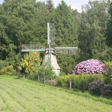 Achtkante POLDERMOLEN (hout) op gemetselde onderbouw, afkomstig uit Zuidveen (gemeente Steenwijkerwold) en daterend uit 1870. Overgeplaatst naar Wapenveld in 1959 en omgebouwd tot molen, geschikt voor opwekking van elektriciteit.