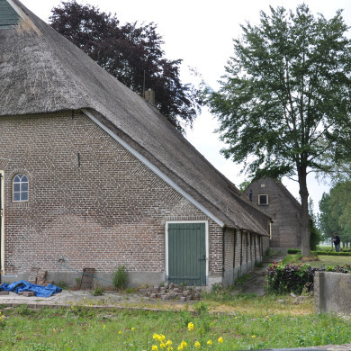 BOERDERIJ, gedateerd 1847, waarvan het dwars voor de stal gebouwde woongedeelte een rieten schilddak draagt en vensters met luiken en zesruitsschuiframen bezit. Stal onder rieten wolfdak.