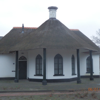 Het houten draaibare PRIEEL is gelegen in de tuin van de in 1908 naar ontwerp van K.C.P. de Bazel gebouwde villa Woudoord. Eenzelfde type prieel is te vinden bij Klein Jagtlust in Oranjewoud.