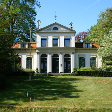 Het houten draaibare PRIEEL is gelegen in de tuin van de in 1908 naar ontwerp van K.C.P. de Bazel gebouwde villa Woudoord. Eenzelfde type prieel is te vinden bij Klein Jagtlust in Oranjewoud.