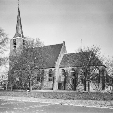 Ned. Herv. KERK. Dorpskerk (XV B) met eenbeukig schip, aan de noordzijde in XIX B met een dwarsvleugel uitgebreid, diep, smallerkoor met driezijdige sluiting en toren, waarvan de tweede geleding versierd met bakstenen traceerwerk. Tongewelven met trekbalken. Inventaris: preekstoel, twee herenbanken en doophek (XVII B). Orgel met Hoofdwerk en Nevenwerk, in 1869 gemaakt door P. Flaes. Mechanisch torenuurwerk, B. Eijsbouts, met automatische opwinding, is buiten gebruik gesteld.