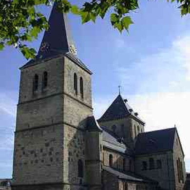 St. Pancratiuskerk, met driebeukig Romaans schip, grotendeels 14e eeuwse toren en koor en dwarspand uit 1901-1903. Klokkenstoel met gelui bestaande uit twee klokken van Gaulard en Zoon, resp. uit 1848, diam. 102 cm en uit 1827, diam. 93 cm, een klok van C.W. Voigt, 1743, diam. 123 cm, en vier klokken van onbekende gieters, diam. resp. 74 cm, 56 cm, 48 cm en 44 cm.