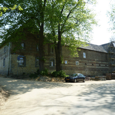 HOEVE Corisberg, schilderachtig tegen de helling gelegen; met gesloten binnenplaats. Opgetrokken uit Kunradersteen en baksteen ten dele met speklagen, XVII-XVIII-XIX A.