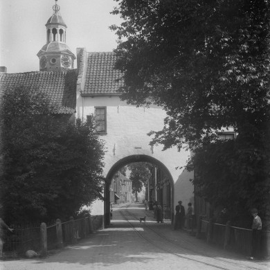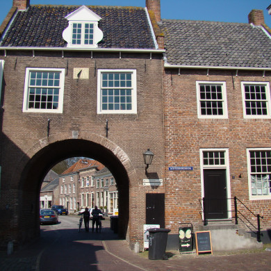 Pand, waarschijnlijk 17e eeuws, met verdieping en vernieuwd schilddak. De gevel heeft, met deuromlijsting, schuif- en draairamen, een midden 19e eeuws voorkomen. Achter dit pand aan het Bonenburg: Bakstenen stal met getoogde inrijpoort en wolfdak.
