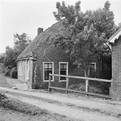 Landelijk PAND onder omgaand zadeldak met vier kleine hoekschoorstenen. Zesruitsvensters; eenvoudige omlijste ingang.