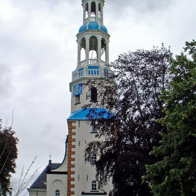Herv. KERK EN TOREN op omheind kerkhof. Aanvankelijk eenbeukig 13e eeuws kerkgebouw, met gotische sluiting en begin 18e eeuw toegevoegde dwarspanden. Over de tweede travee van het schip meloenvormig koepelgewelf, overigens kruisribgewelven. In de kerk rijk met snijwerk versierde preekstoel met trap, achterschot, klankbord en lezenaar; bijpassend doophek; twee herenbanken met lofwerkbekroning op het achterschot en deuren. Alle banken met knoppen. Avondmaalstafel met marmeren blad. Op de preekstoel twee koperen zandloperhouders; op het doophek lezenaar met koperen kaarsenarmen. Groot orgel met rugpositief in kas met snijwerk versierd, in 1785 gemaakt door A.A. Hinsz; orgelbalustrade. Twee tochtportalen. Grafmonument voor Rudolf Huinga. Rouwbord van Rensema. Zestienlichts koperen kroon. Gebrandschilderd wapenruitje 1672. Toren met hoge open lantaren, naar 18e eeuwse vorm herbouwd in 1897. Klokkenstoel met klok van Petit & Fritsen, 1897, diam. 146 cm. Mechanisch torenuurwerk A. Veenhof, Groningen, 1897. Het oude mechanische torenuurwerk is nog aanwezig.