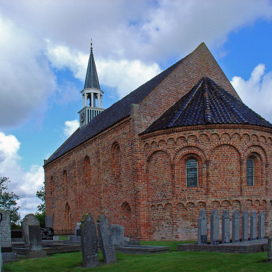 Herv. KERK EN TOREN op omheind kerkhof. Aanvankelijk eenbeukig 13e eeuws kerkgebouw, met gotische sluiting en begin 18e eeuw toegevoegde dwarspanden. Over de tweede travee van het schip meloenvormig koepelgewelf, overigens kruisribgewelven.