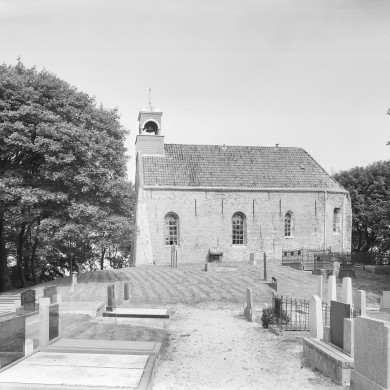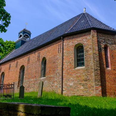 Herv. Kerk op verhoogd kerkhof. Door vier koepelgewelven overkluisd 13e eeuws bakstenen kerkgebouw met vijfzijdige sluiting. In de kerk preekstoel uit 1773 en eenvoudige avondmaalstafel. Op het kerkhof verscheidene 17e eeuwse en jongere zerken. Kabinetorgel uit 1805, gemaakt door A. van Grinsen.