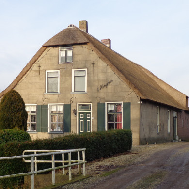 Boerderij uit de 17e eeuw onder rieten wolfdak. In de voorgevel ontlastingsbogen, vlechtingen en 18e eeuwse vensters met 15- en 9-ruitsschuiframen.