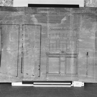 Pand met gevel onder verhoogde gesneden lijst met consoles (XVIII A).