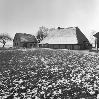 Eind 18e eeuwse rietgedekte Sallandse keuterboerderij van het middenlangsdeeltype, met kleine onderschoer aan bedrijfszijde en wolfdak aan woonzijde.