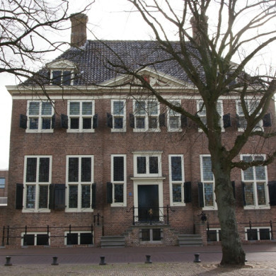 Admiraliteitsgebouw. Blokvormig gebouw met verdieping en omlopend schilddak waarop sierschoorstenen. Voorgevel in klassicistisch barokke trant met door een fronton met wapen gedekt middenrisaliet en vensters met kruiskozijnen. Dakkapellen met driehoekige bekroningen. Gebouwd midden 17e eeuw door Pieter Post. Gerestaureerd omstreeks 1965. Tot de inventaris behoren: een rijk gesneden driedelige portiek en acht schoorsteenmantels uit de bouwtijd met schoorsteenstukken of gesneden boezems met wapens of koppen.