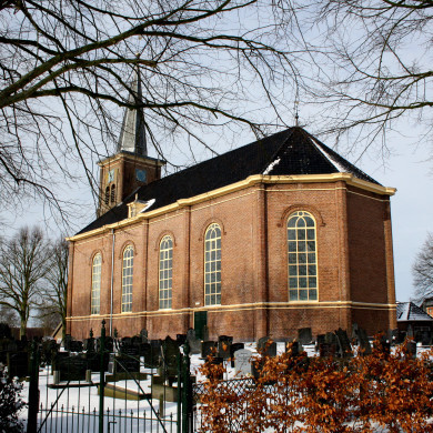 In 1857 gebouwde kerk waarin de gehele 17e eeuwse inventaris van de toen afgebroken kerk is geplaatst t.w. preekstoel met wapens Aylva-Walta gedateerd op voet van de trapleuning 1643. Koperen lezenaar. Doophek met koperen doopboog en bollen. Doophekkenhouder gemerkt E.E.V. Twee overhuifde banken. Banken met gesneden eindschotten en bolbekroningen. Gedenkbord anno 1580; opnieuw geschilderd 1612/1652. Toegangsdeur in achterwand. Eenklaviers orgel, in 1858 gemaakt door L. van Dam en Zonen met gebruikmaking van pijpwerk uit het vervangen Bader-orgel.