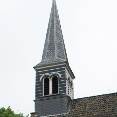 Eenvoudig op terp gelegen en door kerkhof omsloten midden 19e eeuws eenbeukig KERKJE (jaartalankers 1850) dat is opgetrokken uit gele friese steen; het geheel is driezijdig afgesloten, wordt gedekt door een met blauwe pannen belegd zadeldak en bekroond door een torentje (apart monumentnummer 2148