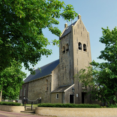 Herv. Kerk en Kerkhof. Schilderachtig gelegen in aanleg 13e eeuws kerkje, in 1874 vernieuwd met uitzondering van een gedeelte aan de noordzijde; westelijke zadeldaktoren, in de kern ook nog wel 13e eeuws. De kerk bevat: 17e eeuwse eiken preekstoel met achterschot en klankbord; gekroond gesneden wapenschild, twee eiken tekstbordjes. Klokkenstoel met gelui van twee klokken, waarvan één gegoten door H. Wegeaert, 1612, diam. 87,8 cm. en een moderne klok.
