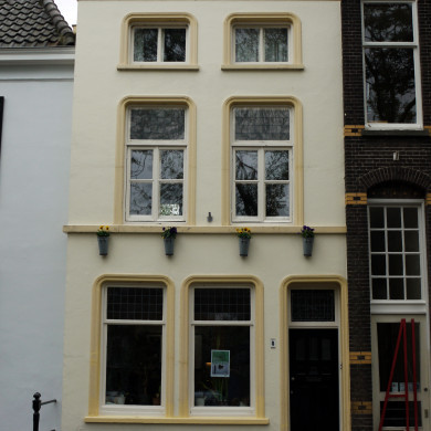 Vroeg 19e eeuws gepleisterd pand met mogelijk oudere kern, met verdieping en onder met blauwe Hollandse pannen gedekt schilddak, De met een eenvoudige kroonlijst afgesloten voorgevel bevat twee kelderlichten, een deur en vijf vensters met 6-ruits (schuif)ramen en (in 1975) voorzien van luiken.