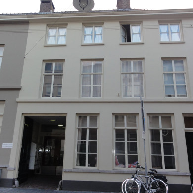 HUIS met 19e eeuwse, eenvoudige gewitte gevel, waarachter, blijkens het metselwerk, nog delen van het daar in 1591 gevestigde Karthuizerklooster schuilgaan.