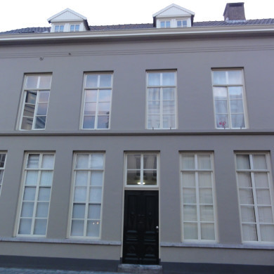 HUIS met 19e eeuwse, eenvoudige gewitte gevel, waarachter, blijkens het metselwerk, nog delen van het daar in 1591 gevestigde Karthuizerklooster schuilgaan.