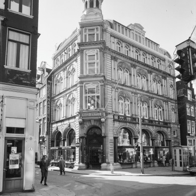Winkelpand (1885, door H.P.Berlage en Tj.Sanders) in neo-Venetiaanse renaissancestijl, met typische 19e eeuwse, door een torentje bekroonde hoekerker.