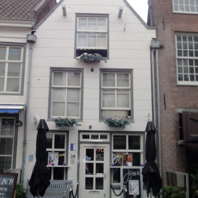 Pakhuis De Twee Snoecken. Lijstgevel met schilddak. Ingang en hijsgaten met rondbogen. In de sluitsteen van de ingangsboog het jaartal 1815. Bovenvensters in zijtraveeen met kleine roedeverdeling. Het gebouw vormt een geheel met Kruisstraat 37.