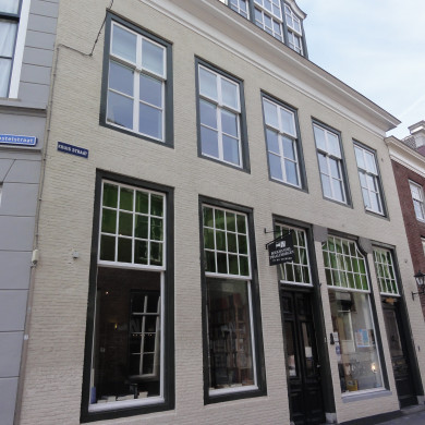 Huis met gebosseerd gepleisterde gevel met kroonlijst op consoles. De lijst is gelijksoortig aan die van nummer 66. Evenals de kapconstructie is hij waarschijnlijk tezamen met die van genoemd buurhuis in een verband vervaardigd. Achttiende-negentiende eeuw.