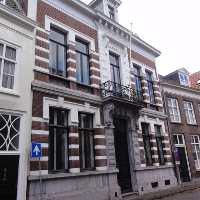 Gaaf, eclectisch, uit ca. 1870 daterend, vijf vensterassen breed herenhuis met verdieping onder met leien (en asbest) gedekt Mansardedak. De in schoon metselwerk opgetrokken voorgevel heeft een plint, deuromlijsting, balkon op consoles boven de deur en cordonlijst van hardsteen en overig lijstwerk van pleisterwerk; aan weerszijden van de risalerende ingangspartij in het midden, twee gekoppelde, rechtgesloten vensters met T-ramen en brede geprofileerde omlijsting (op b.g. met sluitsteen) aan de bovenzijde en op de verdieping onder de vensters nissen met smeedijzeren hekwerk; in het middenrisaliet dubbele deur met bovenlicht, balkon op consoles en smeedijzeren hek, balkondeuren met bovenlicht, gebosseerde omlijsting en afgedekt door kroonlijst met consoles; gevel afgesloten door gekorniste, geprofileerde kroonlijst met consoles boven middenrisaliet; dakkapel met pilasters, kroonlijst en tympaan en met aan weerszijden een oeil-de-boeuf.