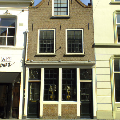 Huis met eenvoudige 18e eeuwse halsgevel met schuiframen.
