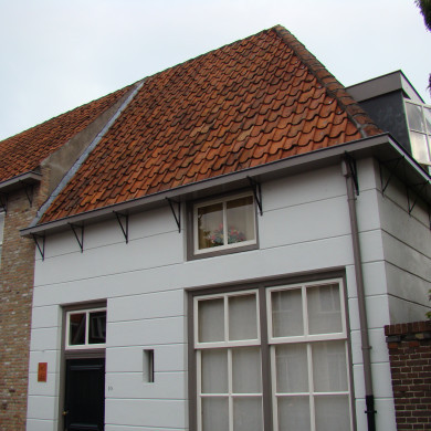 HUIS onder dwars, met rode pannen belegd wolfdak, met opkamer en kelder, gepleisterde gevel. Vormt een geheel met Breestraat 1.