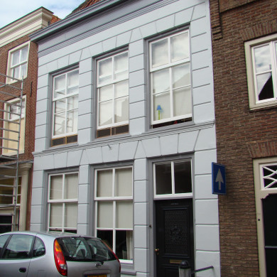 Eenvoudig PAND met gepleisterde, 18e eeuwse voorgevel. 17e eeuwse ingangspartij.
