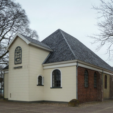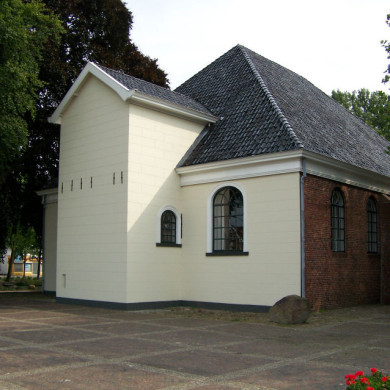 Herv.Kerk. Eenvoudig zaalgebouw uit 1669 onder hoog schilddak. Omlijste rondbogig gesloten ingangen, rondbogige vensters; de muren gesteund door steunberen. In de kerk gesneden preekstoel uit 1726, 18e eeuwse, z.g. Raadsbank en overhuifde herenbank; overige banken merendeels eveneens 18e eeuws. 18e eeuwse koperen wandarmen.