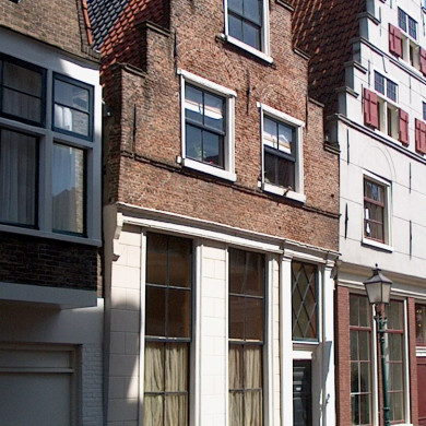 Huis met geheel bakstenen trapgevel, XVIIA; puibalk en pui XVIII B.