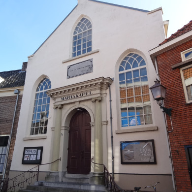 Kapel van het voormalige Mariaklooster (XV), thans Gereformeerde Kerk. Gevel aan de straat gepleisterd uit 1877, noordgevel vormt begrenzing van het binnenhof van het aangrenzende weeshuis. Kap nieuw.