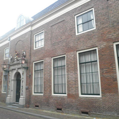 HERVORMD WEESHUIS, twee vleugels aan een binnenhof, waarvan de ene straatwand vormt aan de Korte Achterstraat (ingangsportaal uit 1729) en de andere met een blinde muur langs het open gedeelte van de Turfhaven loopt. Deze vleugel bestaat uit een 16e eeuws gedeelte begrensd door een topgevel, die later bij uitbreidingen in de 18e eeuw is ingebouwd; het hoekgedeelte is in 1848 vernieuwd. Inwendig in de lange vleugel regentenkamer en gang met enig stucwerk 18e eeuw. Bronzen offerblok op hardstenen piedestal. In de tuin hardstenen pomp, twee loden beelden van weeskinderen en een houten eenhoorn.