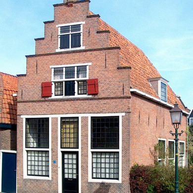 Rechter helft van ondiep woonhuis met eenvoudige bakstenen gevel, geleed door middenrisaliet, waarin ingangspartij, XIX A; bestemd voor annex van het Westfries museum.