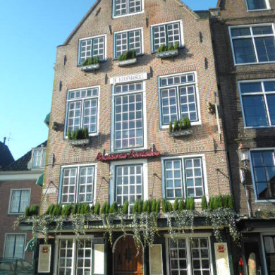 Van ouds terugliggend pand onder zadeldak en met gepleisterde topgevel. In top gevelsteen en windvaan, XVII. Volgens overlevering geboortehuis van schipper Bontekoe.
