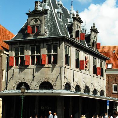 Waaggebouw. Met natuursteen bekleed rechthoekig gebouw met verdieping en tentdak, door Hendrick de Keyser ontworpen. Beneden geopend met rondbogig gesloten poorten. Inwendig: houten zoldering op geornementeerde sleutelstukken; weegjukken. Spiltrap modern.