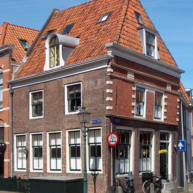 Eenvoudige laat 18e- begin 19e eeuwse gevel voor 17e eeuws pand met hoge kap; roeden in de vensters.